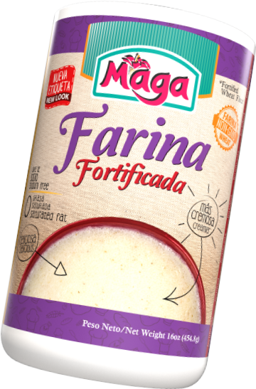 Ingredientes: Farina (Harina de Trigo) fortificada con tiamina, riboflavina, niacina, hierro y ácido fólico