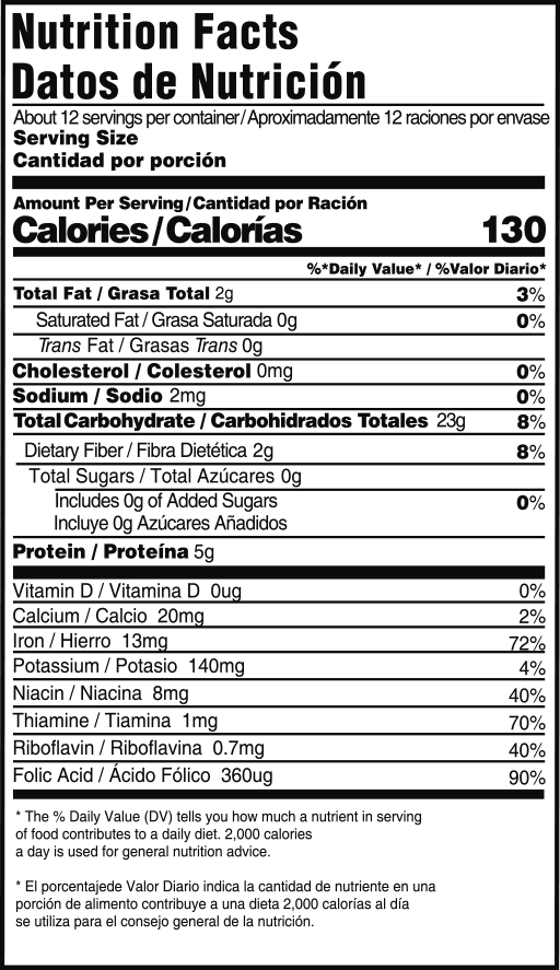 Ingredientes: Trigo fortificado con tiamina, riboflavina, niacina, hierro y acido folico, afrecho de trigo.
