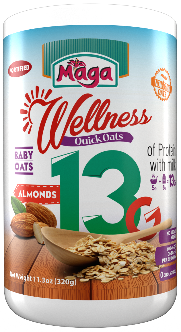 La fuente soluble de fibra de la avena Maga Wellness promueve la regularidad intestinal, ayuda a bajar los niveles de colesterol y a mantener los niveles de glucosa en control.
